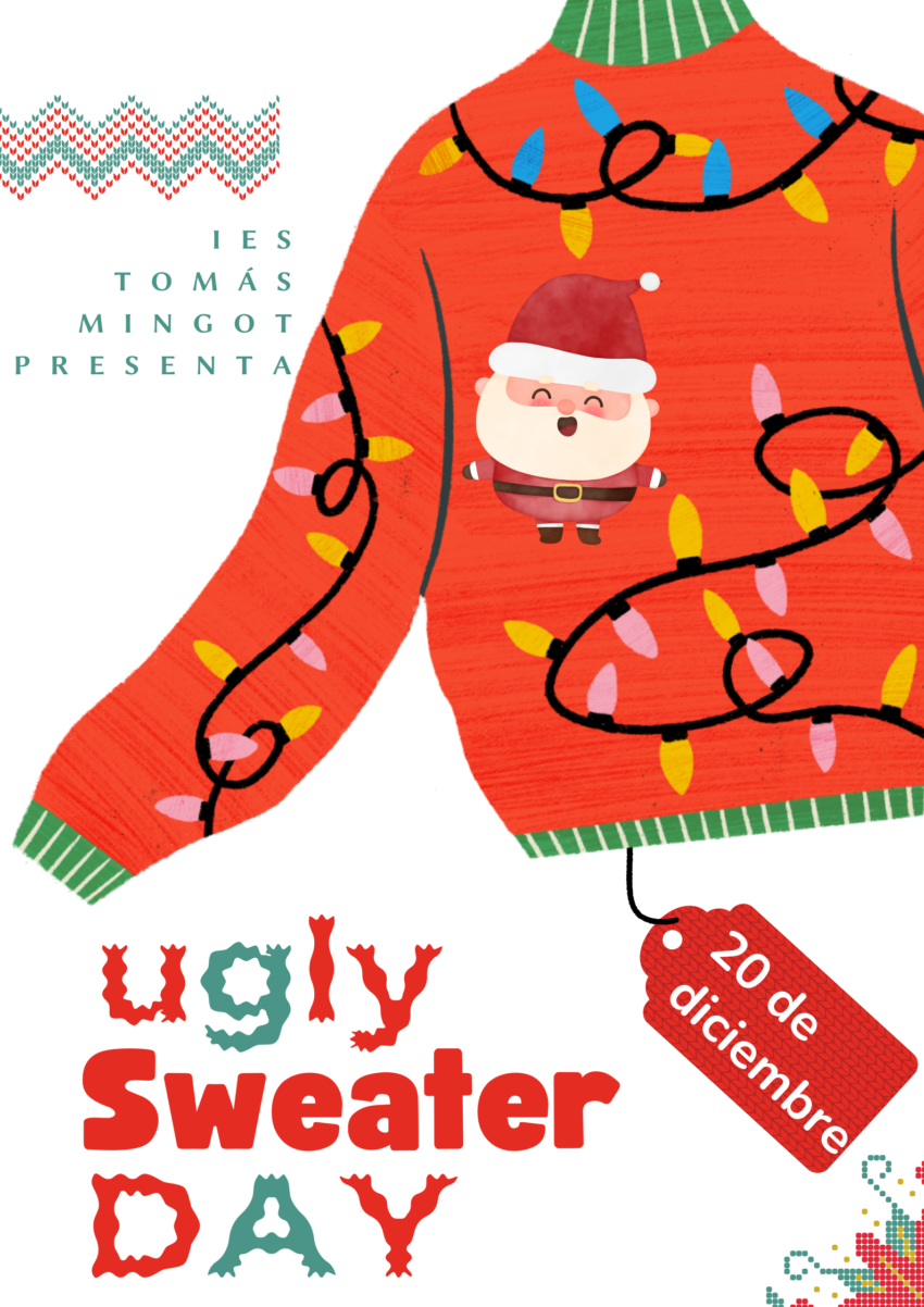 JERSÉIS NAVIDEÑOS Publicada el 19 diciembre, 202419 diciembre, 2024 por Dirección Profesores y alumnos: Animaros a ponernos jerséis navideños el viernes 20. ¡Venga! Un poco de espíritu festivo.